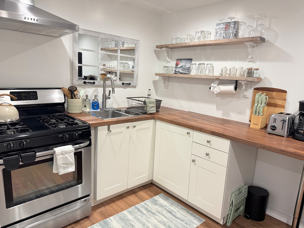 Welcome to The Pacific - a 1,000 sq ft loft-style apartment, steps from downtown! - Lounge on the private patio while your dog enjoys the backyard - Charming local shops and restaurants 1.5 blocks away - Stroll the beaches to see the San Francisco skyline at sunset - Close to San Francisco (30 mins drive) and Oakland/Berkeley (15 min) - Stay in, work remote, and make meals in the well-appointed kitchen. Whatever your adventure, this tranquil retreat awaits you! 14 mins from Oakland Airport.