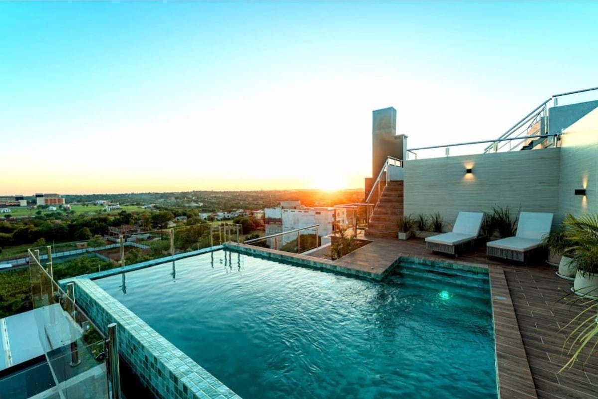 Disfrutá de una estadía única en este elegante departamento en Ciudad del Este. Cuenta con una habitación con cama matrimonial y un amplio sofá cama, ideal para hasta 4 personas. Con diseño contemporáneo y muebles a medida, ofrece confort y estilo, con parrilla y amplio balcón. El edificio es nuevo e incluye amenities como: piscina infinita en altura, coworking, gym, salón para niños, lavandería, hall, salones y seguridad 24h. Ubicado en zona estratégica, ideal para trabajo o descanso.