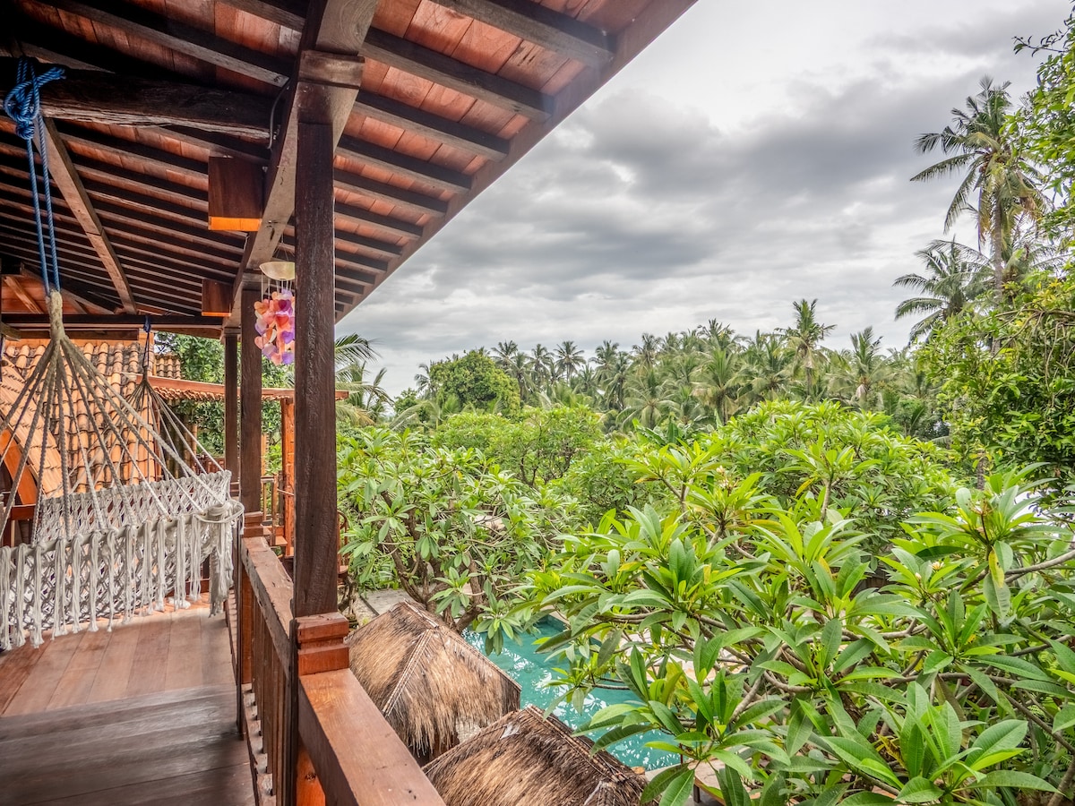 *WE HAVE AMAZING WIFI AND 4 BEAUTIFUL PROPERTIES. CLICK ON MY PROFILE TO SEE THE OTHER 3 HOUSES IN CASE THIS ONE IS BUSY DURING YOUR DESIRED DATES* Nestled on a hillside in the ricefields looking across a valley of palms and rice terraces, not another building in sight, lies Rumah Sinara. You'll enjoy uninterrupted views and the soothing sound of the river just below from the comfort of your bed. You have plenty of space in the balcony to read a book , meditate or simply sit and enjoy nature.