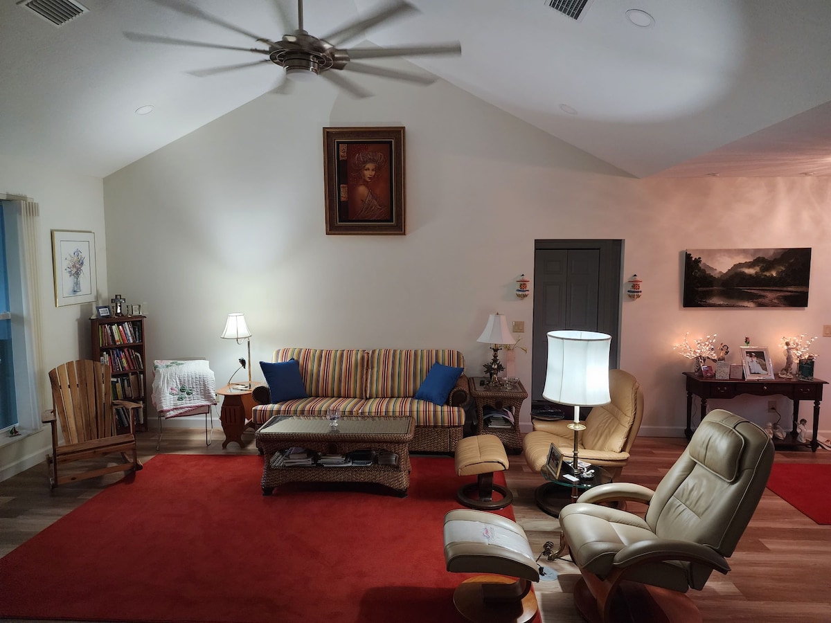 Ახალი: აუზის ელექტრო გამათბობელი - მინიმუმ 82 გრადუსი. Ექვსი საძინებელი, 4000 sf სახლში w 1400 sf Lanai, სავარძლების აუზი, ჰიდრომასაჟიანი აუზი, მასაჟის სკამები, სხვა. Ჩვენ აქ ვცხოვრობთ. "არ არის" მთლიანი ადგილი.„ თქვენ აქირავებთ 3 Airbnb ოთახს, რომელთაგან 2-ს აქვს სრული ზომის, ცალკე სააბაზანოები. მე-3 საძინებლის სტუმრებს შეუძლიათ გააზიარონ თქვენი ორი სრული, პირადი საპირფარეშო და სწრაფი პიტსტოპები, შეუძლიათ ისარგებლონ საერთო 1/2 სააბაზანოთი 1 სართულზე. Თქვენ გაქვთ წვდომა ყველაფერზე, ვიდრე დანარჩენი 3 საძინებელი/სასტუმრო ოთახი ჩვენს სახლში. (ფლაგლერის ოლქის ბიზნესის გადასახადი #12422)