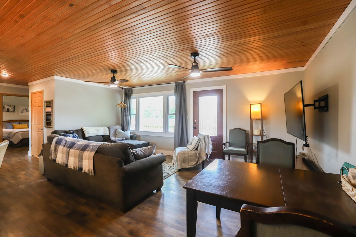 Ეს ყოფილი რძის ბეღელი მდებარეობს ფერმაზე, რომელიც ჩვენს ოჯახში უკვე 150 წელია. Ვოცნებობდით, რომ ის მყუდრო, კომფორტულ სახლად ვაქციოთ, რომლითაც ყველას მოეწონებოდა, ვისაც მშვიდი დასვენება სჭირდება. Ჩვენ ვიმყოფებით მდინარე ბიგ-ფაინთან ახლოს, მდინარის გასასვლელით თითქმის ნებისმიერი მიმართულებით, Piney River Brewing Company, Big Piney Sportsman's Club, Mark Twain National Forest და დაახლოებით 45 წუთიდან საათამდე რამდენიმე მისასვლელით ამჟამინდელ და ჯეკს ფორკის მდინარეებზე.
