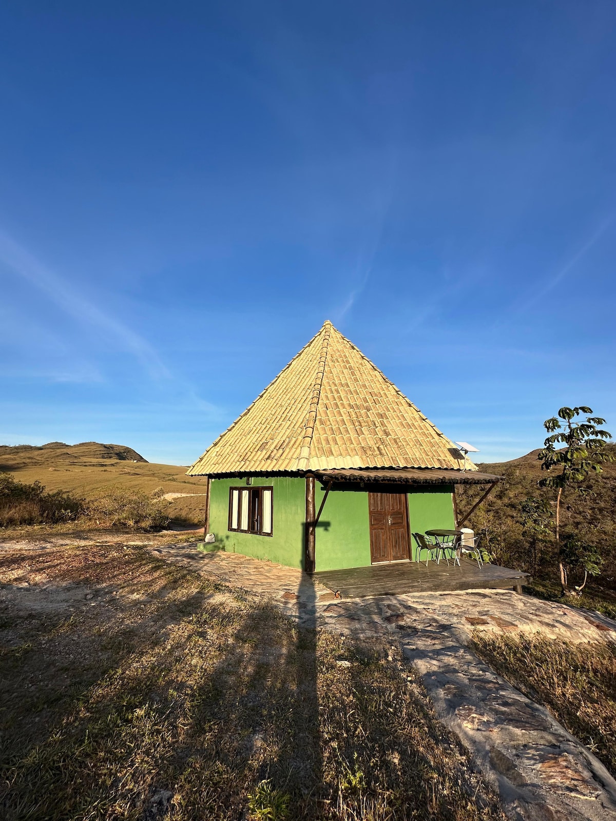Imagine um lugar onde a calma abraça você e as vistas deslumbrantes do cerrado te deixam sem fôlego. Essa é a Tapera, nossa nova acomodação na Chapada dos Veadeiros, construida com muito carinho e por nós, os anfitriões, para ser seu refúgio perfeito. Relaxe sob as estrelas junto à fogueira, e depois das trilhas revigore-se na ducha e desfrute do conforto da cama king-size (e um sofá-cama para mais aconchego!). Venha curtir o melhor da Chapada de um jeito especial e inesquecível. Te esperamos!
