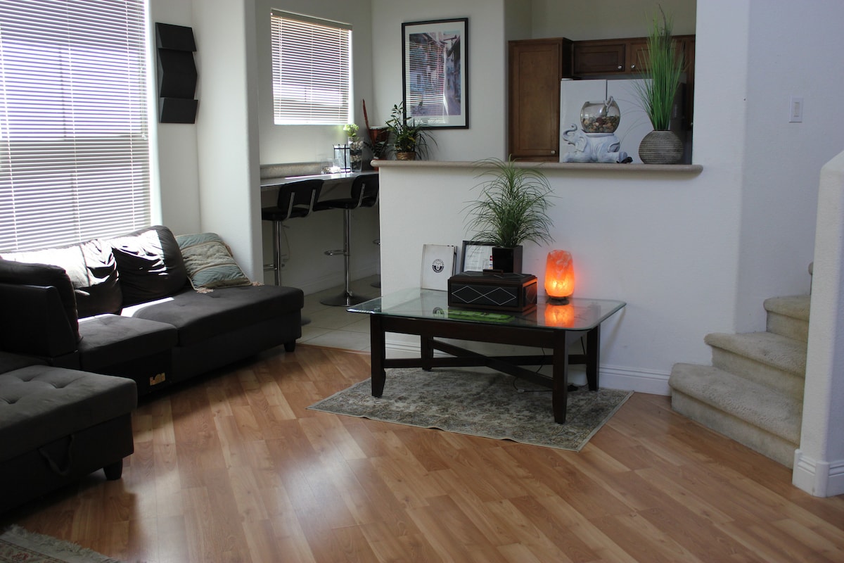 Welcome to our inviting casita — a fully furnished and thoughtfully equipped retreat, perfect for stays of 30 to 60 days. Tucked away in a peaceful neighborhood, you’ll enjoy the privacy and security of our gated yard. A one-car garage adds extra convenience during your visit. You'll also be ideally located to explore unforgettable destinations like Death Valley, the stunning Red Rock Canyon, and the vibrant energy of Las Vegas. Just 9 minutes to Ron Fellows and 21 minutes to Staccato Vegas.
