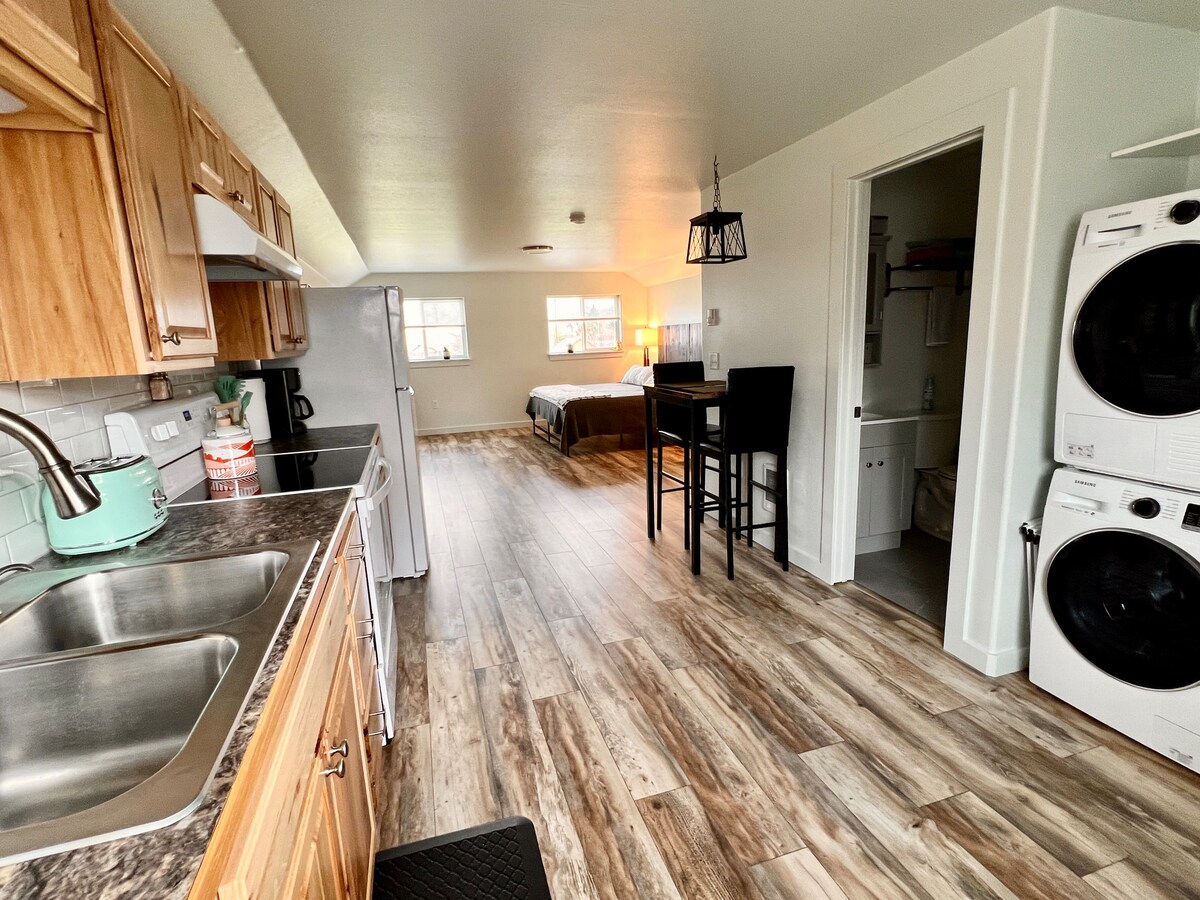 Ეს არის პატარა სტუდიო პირველ სართულზე. Მას აქვს ძალიან კომფორტული ორადგილიანი საწოლი დისტანციურად მართვადი რეგულირებადი დახრილი საწოლის ჩარჩოთი თქვენი თავისა და ფეხების დასარეგულირებლად. Მას ასევე აქვს ლამაზი სამუშაო სივრცე ან ადგილი, სადაც საჭმელს მიირთმევთ. Მას აქვს კარგად აღჭურვილი მინი-სამზარეულო და ლამაზი სააბაზანო 3’ საშხაპით. Სტუდიო იდეალურია ორი ადამიანისთვის, თუმცა შეგვიძლია გამონაკლისის დაშვება და დამატებითი ადამიანისთვის საწოლის დამატება. Ან შეგიძლიათ თან იქონიოთ ჩვილის საწოლი.