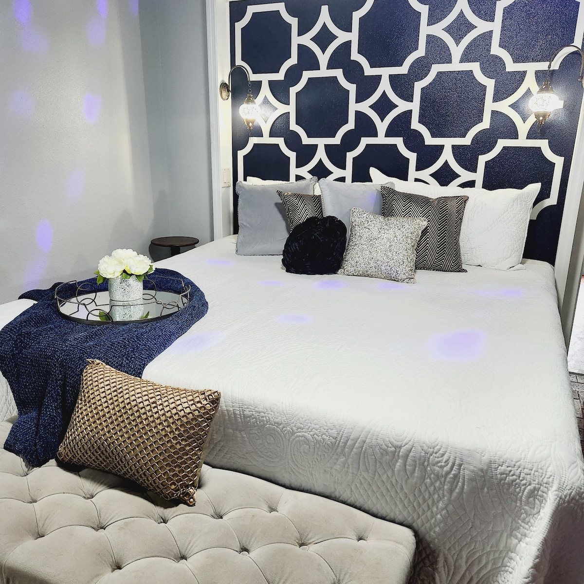 Check-in 6 PM • Check-out 10 AM Early (1 PM) or late (5 PM) from $49 Romantic designer loft with a fireplace wall, cinematic lighting, and a deep soaking tub couples love. A private, stylish escape near the airport, downtown, and major theme parks. Close to top restaurants and attractions, yet designed for relaxation and comfort with no shared spaces. Adjustable queen bed, spa-style bath, fireplace ambiance, second parking spot ($19 extra). No smoking | No pets.