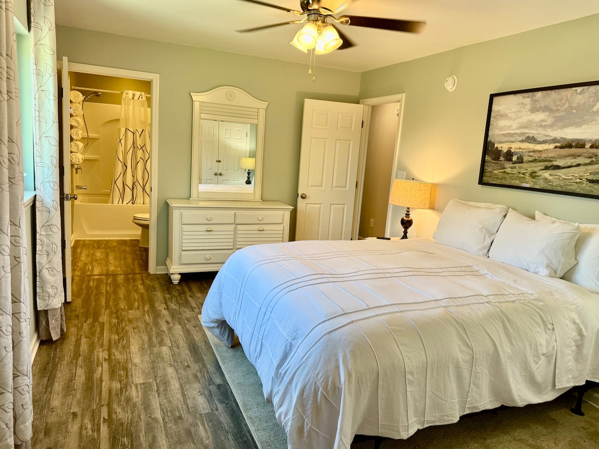 This condo at Camelot by the Sea is centrally located to the heart of Myrtle Beach both driving and walking. Find the beach just a few steps away. The newly renovated condo even offers a fully functional kitchen with everything you need to make this your next WFH getaway stay-cation. Comfy living room with a fold out sofa bed. Catch all of your favorite entertainment on one of the two large LED TVs, or better yet, enjoy the multiple pools, hot tub, and a lazy river that you can float in all day.