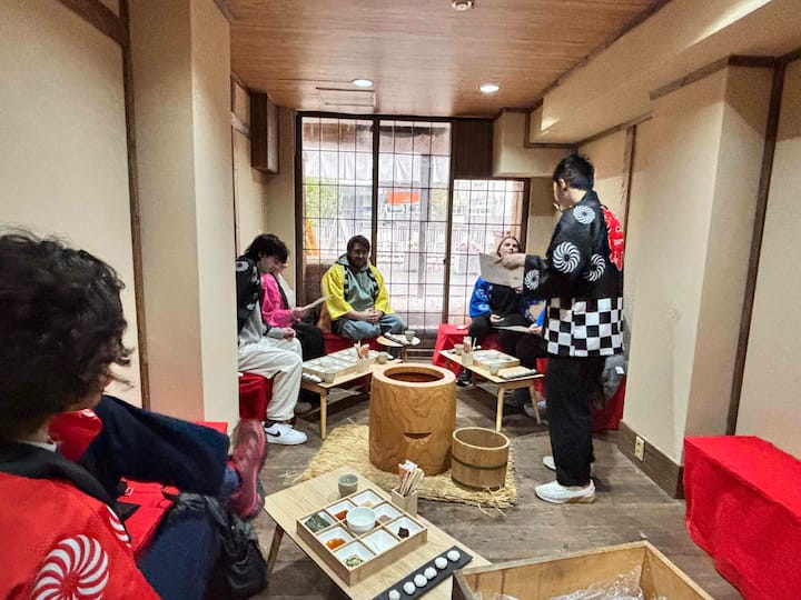 ტრადიციული მუცის ტკეპნა ოსაკაში, დოტონბორის რაიონში! ადგილზე შეგიძლიათ დააგემოვნოთ სვეტისა და დანადგარის მეშვეობით დამზადებული მუჩი.