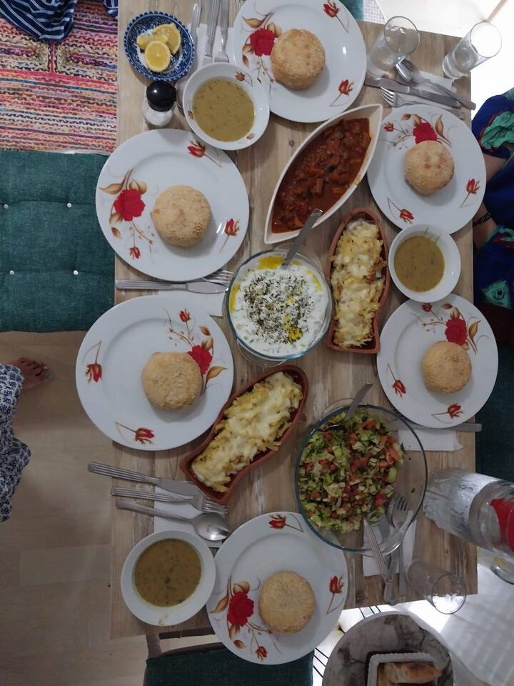 თქვენ გეპატიჟებით ნამდვილ სამზარეულოში. ჩაის სმის შემდეგ ოთხი კერძის მომზადებას ისწავლით, მათ შორის, სეზონურ ძირითად კერძს, სარმას ან დოლმას (ფოთლოვანი ან ბოსტნეულის გოლს), ბიორეკსა და ახალ სალათს.