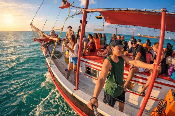 გემით გასეირნება ზღვისპირას მზის ჩასვლისას