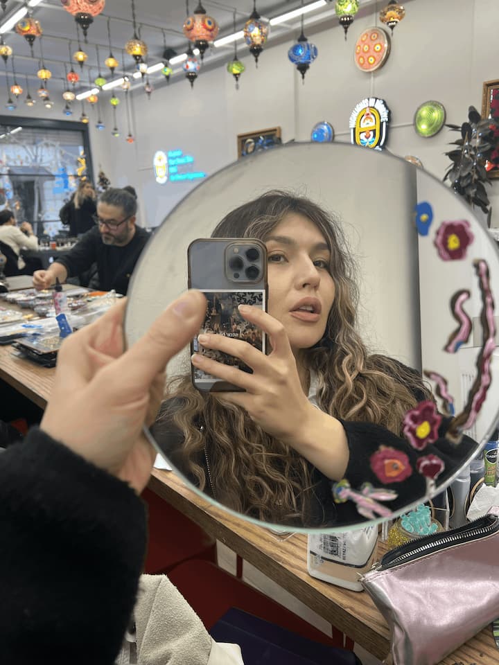 დაიტანეთ აკრილის საღებავი მინის სარკეზე კოიჯეგიზში, დაამატეთ ფერის ფენები. შექმენით ფერის გადასვლები, ნიმუშები. გააფორმეთ გეომეტრიული, აბსტრაქტული ან ყვავილოვანი მოტივებით. იმავე დღეს გაშრება. გამოფენის სტენდით მიტანა.