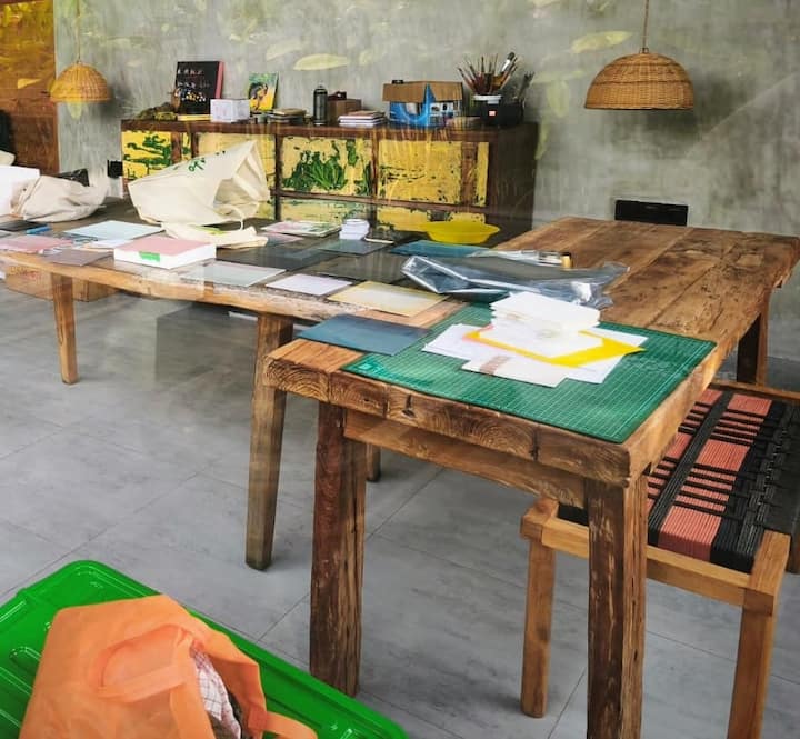 მე ბეჭდვის ხელოვანი ვარ, რომელიც ეფუძნება ელეგანტურ ინდივიდუალურ პროდუქტებს. ჩემს კრეატიულ სტუდიაში, ბალის სანაპიროზე, გასწავლით ხელით შეღებვისა და ბეჭდვის ტექნიკას, რომ შექმნათ უნიკალური მაისურები, ჩანთები ან ტილოები!