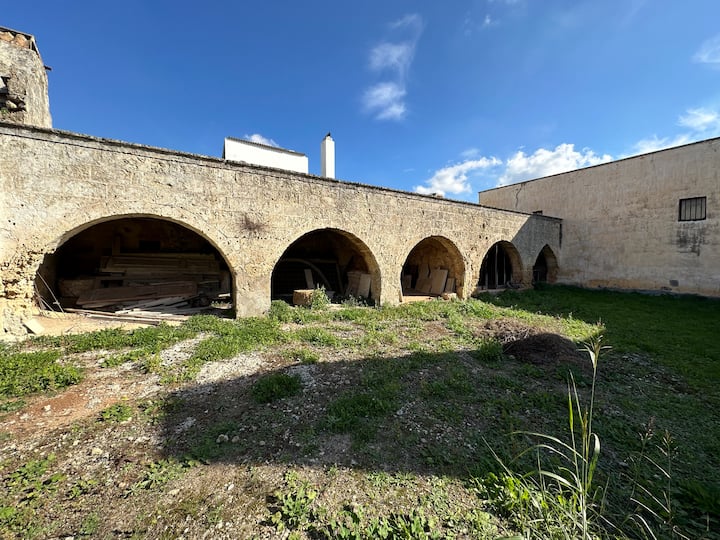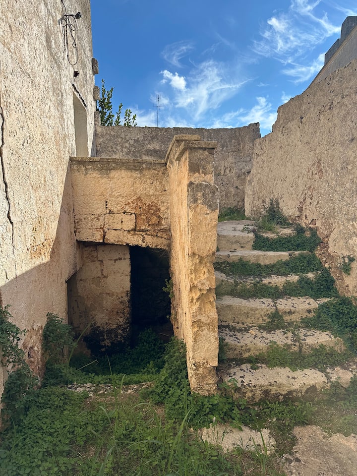ერთობლივი დასვენების მომენტი პრესიჩეს ისტორიული საცხოვრებლის ბაღში, XVI საუკუნის ფერმის ნარჩენებსა და ძველ მიწისქვეშა დალაგების ადგილს შორის, ადგილობრივი ღვინითა და ტიპური პროდუქტებით.