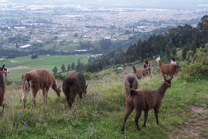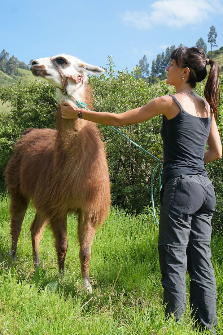 გაიყვანეთ თქვენი ლამა ეკვადორული ანდების მთებში. ტყეები, ფარული ჩანჩქერები და კაიამბეს ვულკანის ხედები — ეს ყველაფერი გელით 2‑4‑საათიან მსუბუქ ლაშქრობაში, რომელშიც ჩემ მიერ ხელით გაზრდილი რვა ლამასგან შემდგარ გარემოცვაში მიიღებთ მონაწილეობას. ფოტოები მოგვიანებით გამოგიგზავნით.