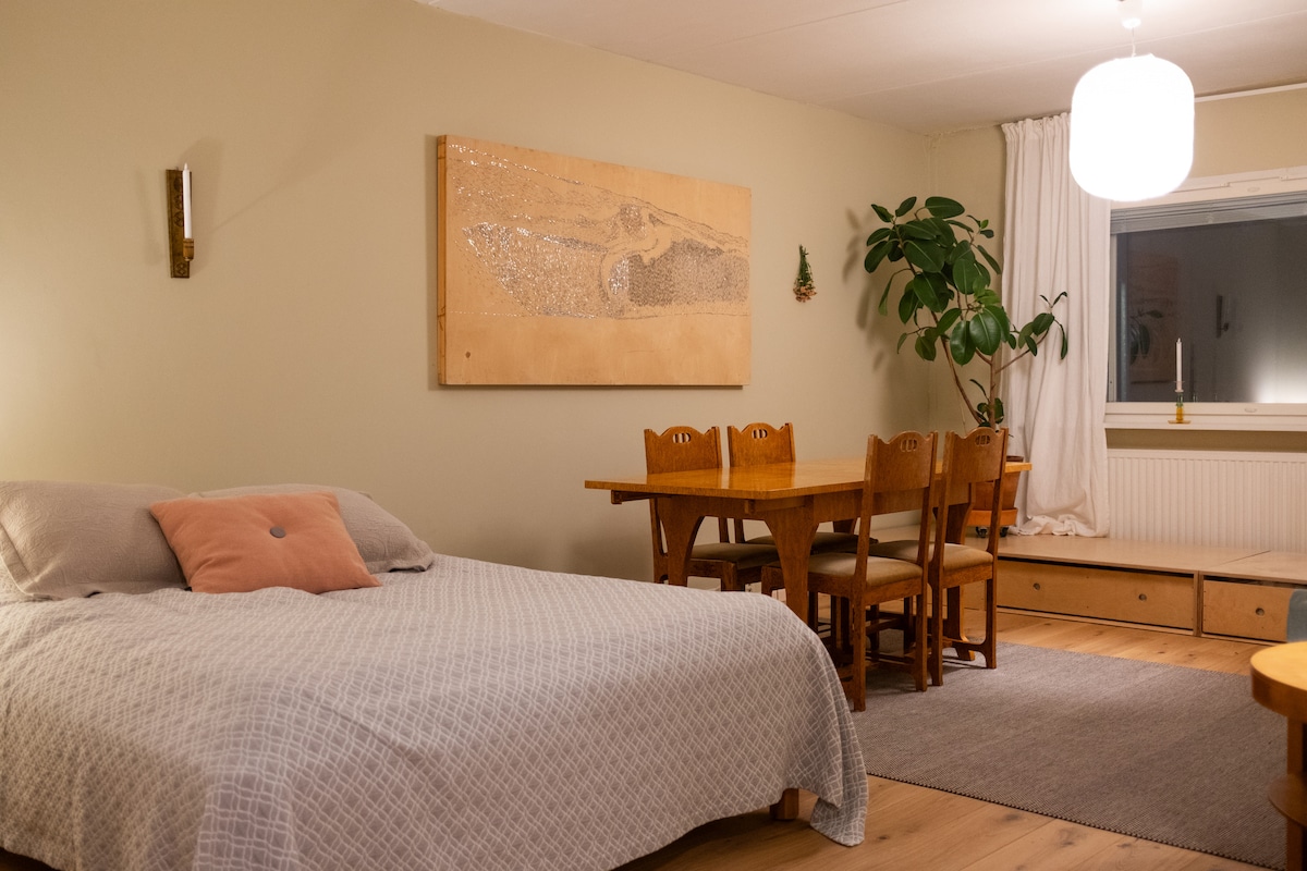 Სტუდიო მშვიდ პატარა სახლში, ქალაქის მტვრისა და მტვრისგან მოშორებით. Ჰელსინკი-ვანტას აეროპორტთან ახლოს, კარგი საზოგადოებრივი ტრანსპორტის კავშირები, უფასო პარკირების ადგილი. 33 კვადრატული მეტრის სტუდიოს ტიპის ბინა საკუთარი შესასვლელით. Სრულიად გარემონტდა 2020 წელს. Საჰაერო წყარო სითბოს ტუმბოს ინარჩუნებს ბინა ზაფხულში და თბილი ზამთარში. 160 სმ ორადგილიანი საწოლი Tempur ლეიბით, 140 სმ დივანი, ბავშვთა სამგზავრო საწოლი საჭიროების შემთხვევაში.