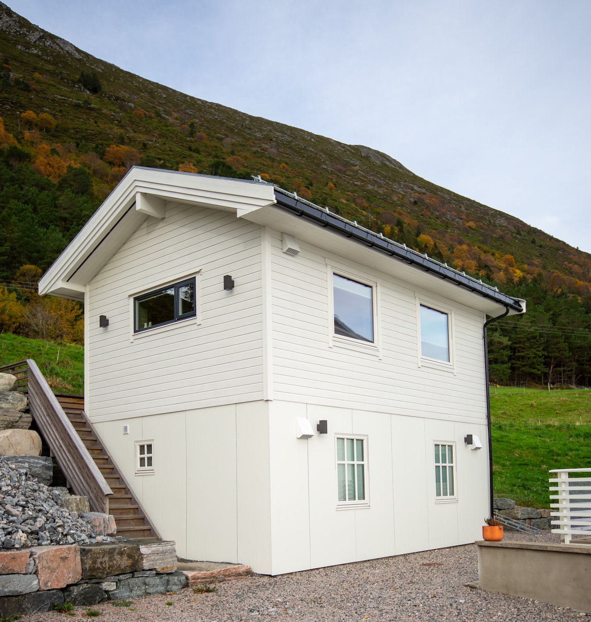 Სახლი სოფლად და წყნარ გარემოში, საიდანაც შესანიშნავი ხედები იშლება ოლესუნდზე, ზღვასა და მთებზე. პირველი სართული - მისაღები ოთახი და სამზარეულო ღია გეგმით პირველ სართულზე, სამზარეულოდან დიდ ტერასაზე გასასვლელით. Ცალკე მისაღები ოთახი ტელევიზორით. 1 სააბაზანო საშხაპით/სველი წერტილით. Ფართო სამრეცხაო ოთახი სარეცხი მანქანით/საშრობით. მე-2 სართული - 1 სააბაზანო საშხაპით/აბაზანით. 4 საძინებელი და მისაღები ოთახი. Აივნები სამხრეთით და დასავლეთით. Ბაღში არის სათამაშო ხის სახლი. Დამტენი ელექტრომობილისთვის. Ხელმისაწვდომია სარბენი ბილიკი და დასატრიალებელი ველოსიპედი.
