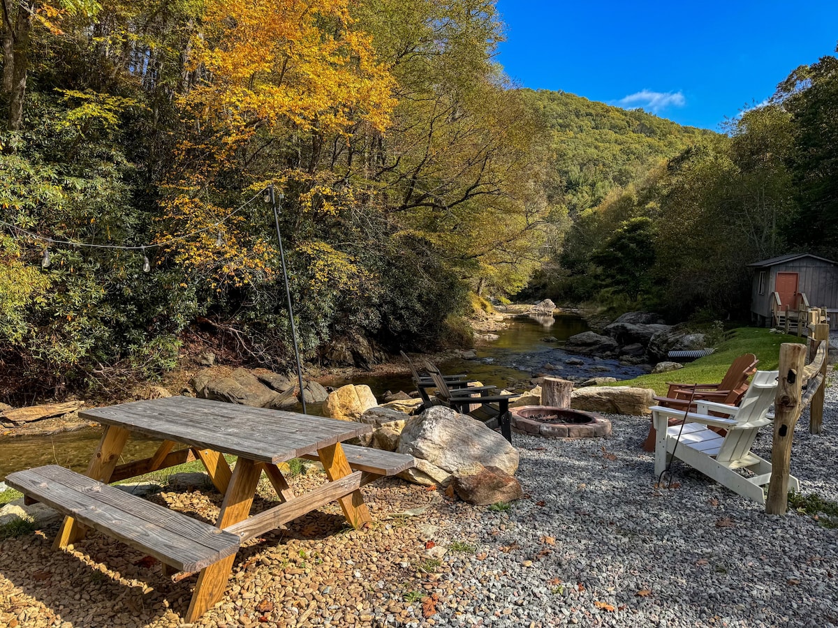 Upscale creekside cabin 15 min to Boone
