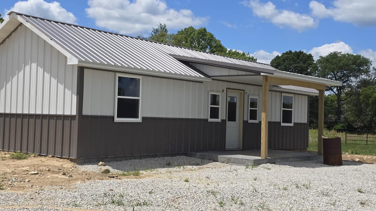 Ახალი ხის სახლი ჩვენს კერძო ფერმაზე.