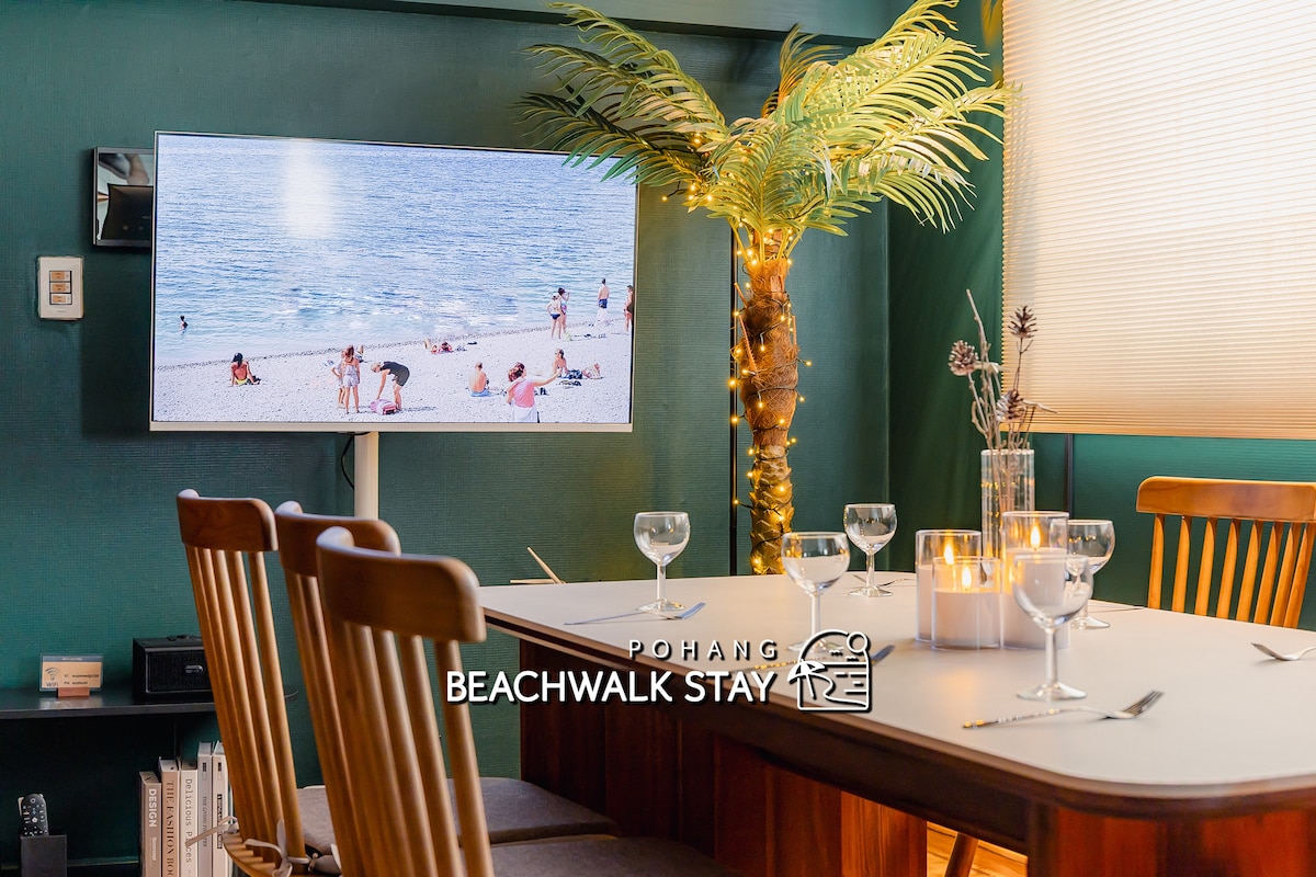 포항비치워크 송도해변도보 3분 포스코야경 최대8인 3room3bed 호텔침구 유아동반