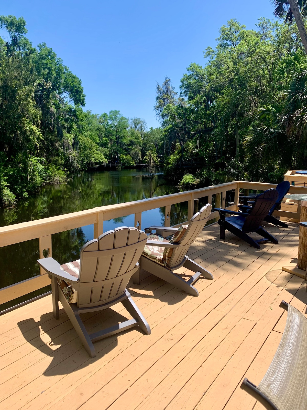 This memorable place is anything but ordinary. Enjoy this beautiful and unique waterfront property on the Withlacoochee River that sleeps four in a large loft. There's a spacious two level deck and fire pit that is shared with two other homes on the property. It's got a place to dock your boat, and along with your stay you'll have access to kayaks and paddleboards on the nearby Crystal River to swim with the manatee at Three Sisters Springs- all free. Only two hours to Disney!
