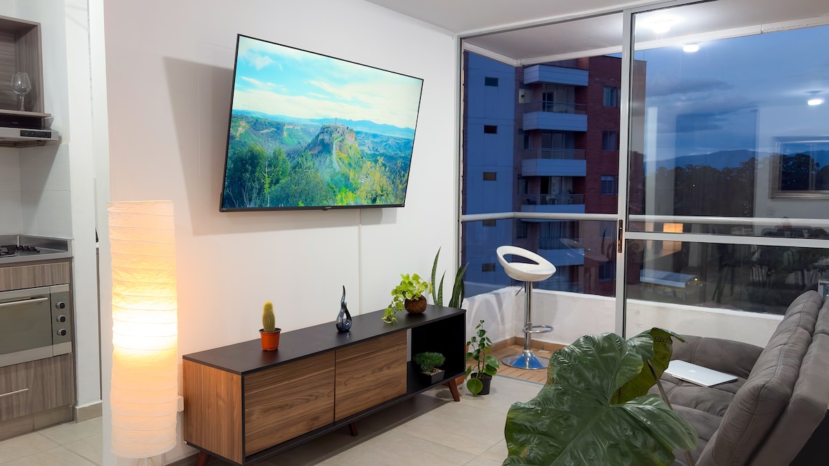 Იცხოვრეთ მედელინის საბოლოო შთაბეჭდილებით ამ ცენტრალიზებულ, მე-11 სართულზე მდებარე ბინაში სტუმრობით. Ისიამოვნეთ საზოგადოებრივი ტრანსპორტით და ისეთი სავაჭრო ცენტრებით, როგორიცაა Oviedo, Santa Fe და Rio SUR. Ეს ლამაზი და ესთეტიკურად სასიამოვნო ბინა არა მხოლოდ გთავაზობთ ქალაქის გასაოცარ ყოველდღიურ ხედებს, არამედ სრულად აღჭურვილია ყველაფრით, რაც განსაკუთრებული სტუმრობისთვის გჭირდებათ. Იყავით მაგარი და კომფორტული სეზონის მიუხედავად, ამ ბინასთან ერთად, რომელიც მოიცავს AC-ს