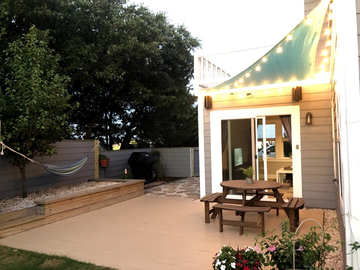 Მიკროსახლი გარე ბანკებზე...ნათელი, და თანამედროვე... იდეალურია 2 ადამიანისთვის! - მყუდრო საწოლი ყველაზე რბილი თეთრეულით - კიტჩენი აღჭურვილია ქურით, ჭურჭლის სარეცხი მანქანით, მაცივრით, ქვაბებით, ტაფებით, ჭურჭლით, ფრანგული პრესით, Keurig-ით, ჩაის ჩაიდნით, ჩაის ქვაბით, ბარის აქსესუარებით - ლუქს-კლასის კაფელ-მეტლახი/სააბაზანო - რელაქსი ძველებურ აბაზანაში, უკანა ვერანდაზე -10x16 პატიო აღჭურვილია გაზის გრილით, სახანძრო ორმოთი და ჰამაკით - გარე საშხაპე - სმარტ-ტელევიზორი - ველოსიპედები, კაიაკი, სერფინგის დაფები, საპსერფინგის დაფა, იეტის გამაგრილებელი, პლაჟის სკამები და ქოლგა