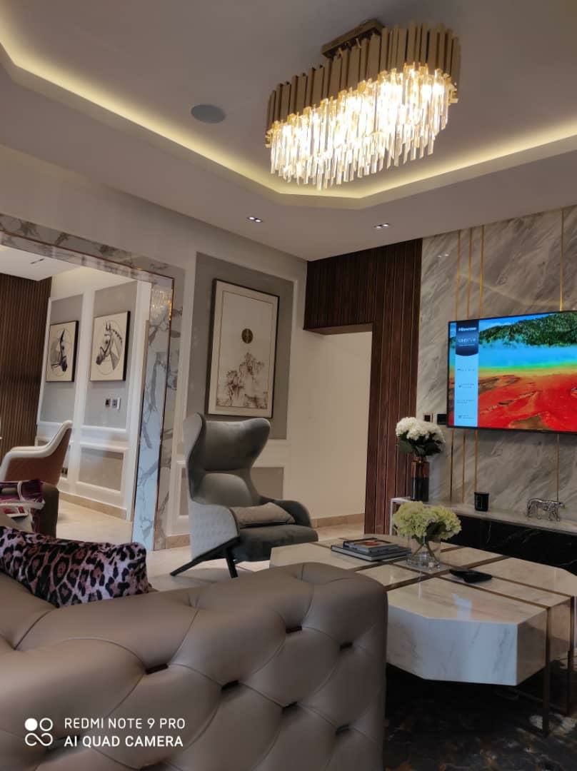 A deluxe and quintessential livingroom with separate bedroom. Toilet and bathroom ensuite. Ideal for business or leisure stay. Tastefully furnished with suiting ambience. Situated in a serene environment within a secured and gated estate. Roads are well paved, street are well litted and suitable for morning, evening and night stroll, walk and jogging. As a Reserved Estate, the area is devoid of rowdiness, noise and chaotic transportation system associated with other places.