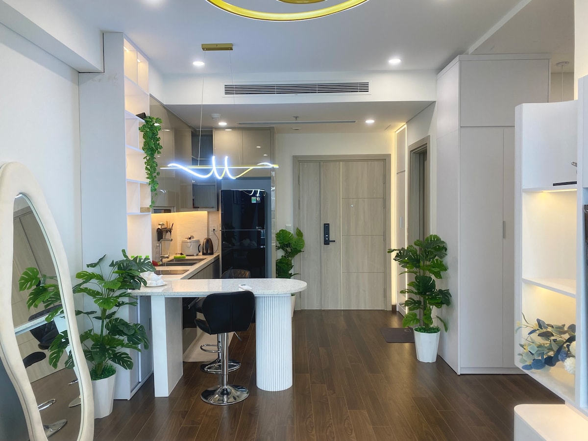 Trieu Do Lake Sea ◈ View at Masteri West Heights - აღმოაჩინეთ სუპერ ლუქს-კლასის 1-საძინებლიანი ბინა დაუყოვნებლივ. ◈ Შეიგრძენით 5-ვარსკვლავიანი სასტუმრო მომსახურება პირდაპირ ბინაში: - სუპერ VIP სტუმრის სტატუსით პირდაპირ ფოიედან გიმასპინძლებთ, ჭიშკრის გასაღები კი ელეგანტურად დაგხვდებათ, როგორც 5-ვარსკვლავიანი სასტუმროს VIP სივრცეში შესვლისას - მისაღები დარბაზი გთავაზობთ A კლასის სასტუმროს ლუქს-კლასის თბილ სივრცეს, სადაც შეგიძლიათ შეიგრძნოთ გაკვეთილი პირდაპირ თქვენს სახლში - Netflix ტელევიზორი, სარეცხი მანქანა... უზრუნველყავით სივრცე, რომელიც არ შეიძლება იყოს უფრო მოწესრიგებული.