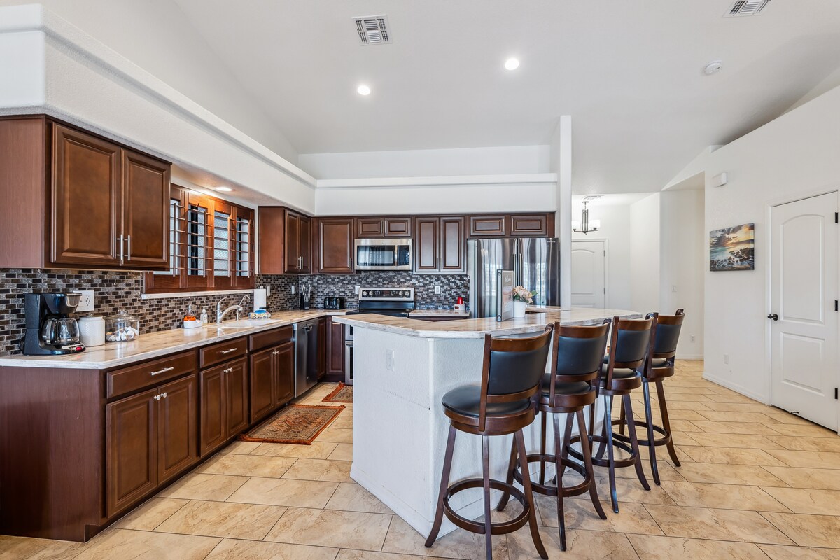 Კეთილი იყოს თქვენი მობრძანება ჩვენს უდაბნოს ოაზისში. Ჩვენ გვაქვს იდეალური ადგილი თქვენთვის!! Დატკბით ერთი დღით ტბასთან, შუადღისას რაზორში ან ღამით კაზინოში, ჩვენს სახლში არის ადგილი, რომ დატკბეთ არიზონას უდაბნოს სილამაზით. Მიირთვით Netflix 80in TV ან lounge ფრენბურთის აუზი(3.5 მხარეს/5ft შუა). Ბარბექიუ და დაფარული პატიო. Მეგობრული უბანი. მშვიდი საათები: 10-დან 7 საათამდე. Პარკირების ადგილი სავალ ნაწილზე და ქუჩაში (ავტოფარეხის გარეშე) გვერდითა ავტოსადგომი სამართებლებისთვის. არ არის შინაური ცხოველები, არ არის მოწევა! აბსოლუტურად არავითარი ფოიერვერკი!!