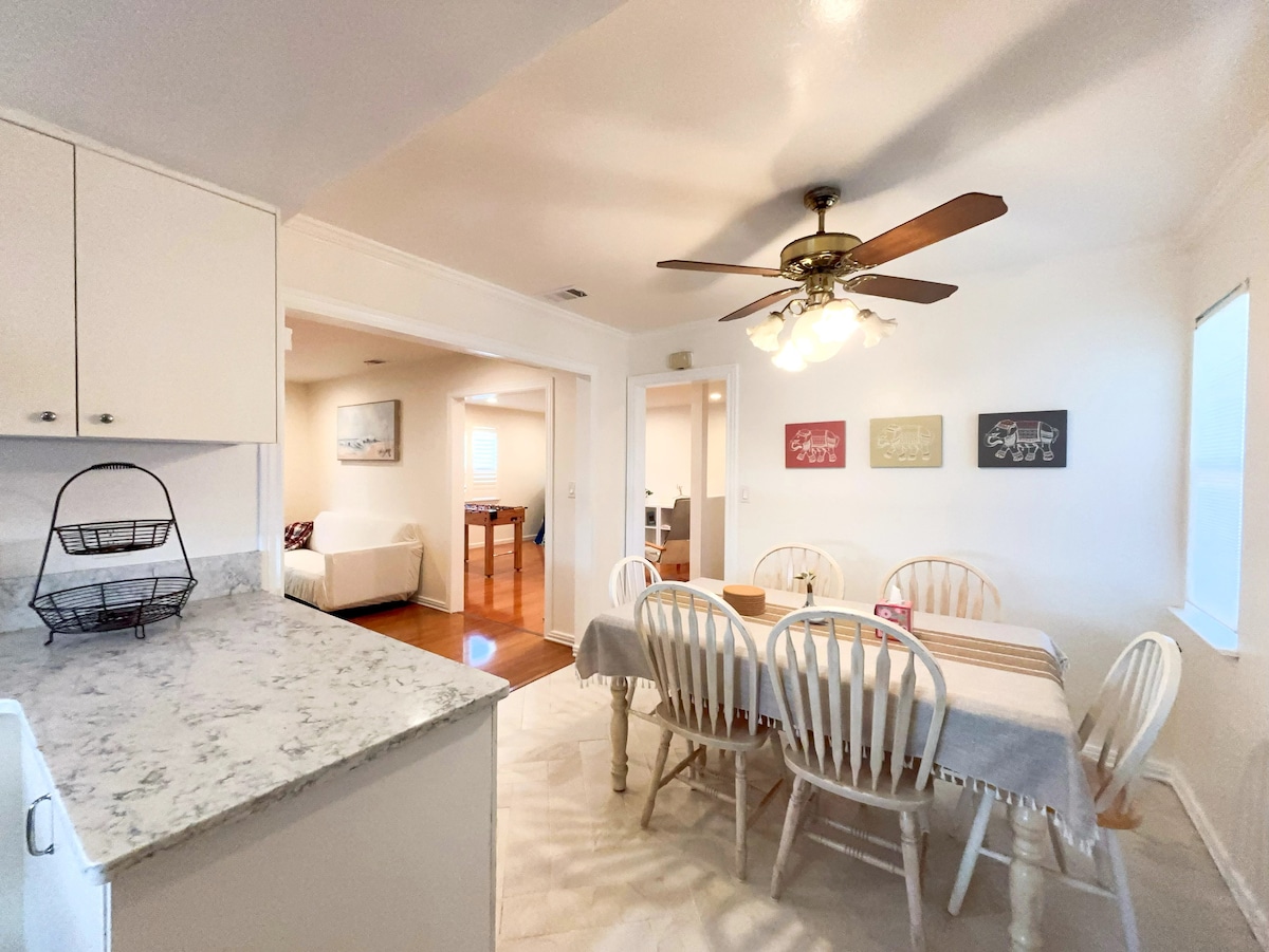 Დაისვენეთ 4 ‑ საძინებლიან, 2 ‑ საძინებლიან საცხოვრებელში, ყურეში. Იდეალურია ოჯახებისთვის ან ჯგუფებისთვის, ჩვენი სახლი გთავაზობთ საკმარის სივრცესა და საინტერესო საყოფაცხოვრებო პირობებს შესანიშნავი სტუმრობისთვის. Შიგნით დატკბით სრულად აღჭურვილი სამზარეულოთი, სასადილო სივრცითა და მყუდრო მისაღები ოთახით. Კეთილმოწყობილი საძინებლებით ისინი კომფორტსა და განმარტოებას უზრუნველყოფს. Ჩვენი უკანა ეზოს პატიო იდეალურია დასვენებისა და ბარბექიუების მასპინძლობისთვის. Გამოიწვიეთ თქვენი ხალხი პინგ-პონგის ასანთებად დამატებითი გასართობად Დაჯავშნეთ საცხოვრებელი და ისიამოვნეთ დასვენებითა და ძიებით!