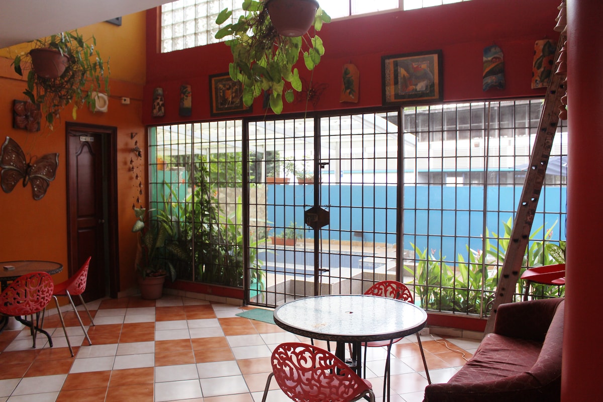 Ჰოსტალი ვილა დონ პაბლო არის საცხოვრებელი, სადაც თქვენ გექნებათ კავშირი ბუნებასთან, პლაჟებთან და მომხიბვლელ სოფელთან ლას ტაბლასი. Თუ თქვენ ეძებთ ადგილს ოჯახთან, მეგობრებთან ერთად ან ვიზიტის მიზეზი სამუშაო ვილები დოს პაბლო იდეალურია თქვენთვის . *ჩვენ გვაქვს შესანიშნავი WIFI* Ჩვენ გვაქვს ჰამაკები, სადაც შეგიძლიათ დაისვენოთ და მოუსმინოთ ჩიტების ხმას. Ჩვენ მხოლოდ 10 წუთის სავალზე ვართ ლამაზი პლაჟიდან, სახელად PLAYA LAS COMADRES. Ჩვენ გელოდებით