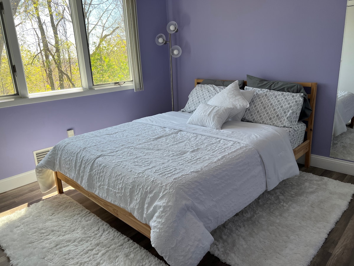 Ცალკე სახლი სტუმრების სივრცით მე-2 სართულზე. Მდებარეობს მშვიდ საცხოვრებელ ადგილას, ქუჩაში და მის გარეთ. Აპარტამენტს აქვს ცალკე შესასვლელი, გარე დასაჯდომი ადგილები, პირადი კარის გასაღების კოდი. Მისი 1 საწოლიანი ოთახი დიდი საწოლით , მისაღებ ოთახში არის ტახტი 2 რეკლინერით. Სარეცხი მანქანისა და საშრობის ხელმისაწვდომობა საერთო სივრცეში. Ცენტრალიზებულად მდებარეობს და 30 წთ-დან 1 სთ-მდე მთავარ აეროპორტებში, ნიუ-იორკი, პენი, ნიუ-ჯერსი პლაჟები და სათხილამურო კურორტი. Რესტორნებთან, საყიდლებთან ახლოს. Საზოგადოებრივი ტრანსპორტით სარგებლობა ავტობუსითა და მატარებლით რამდენიმე წუთშია შესაძლებელი.