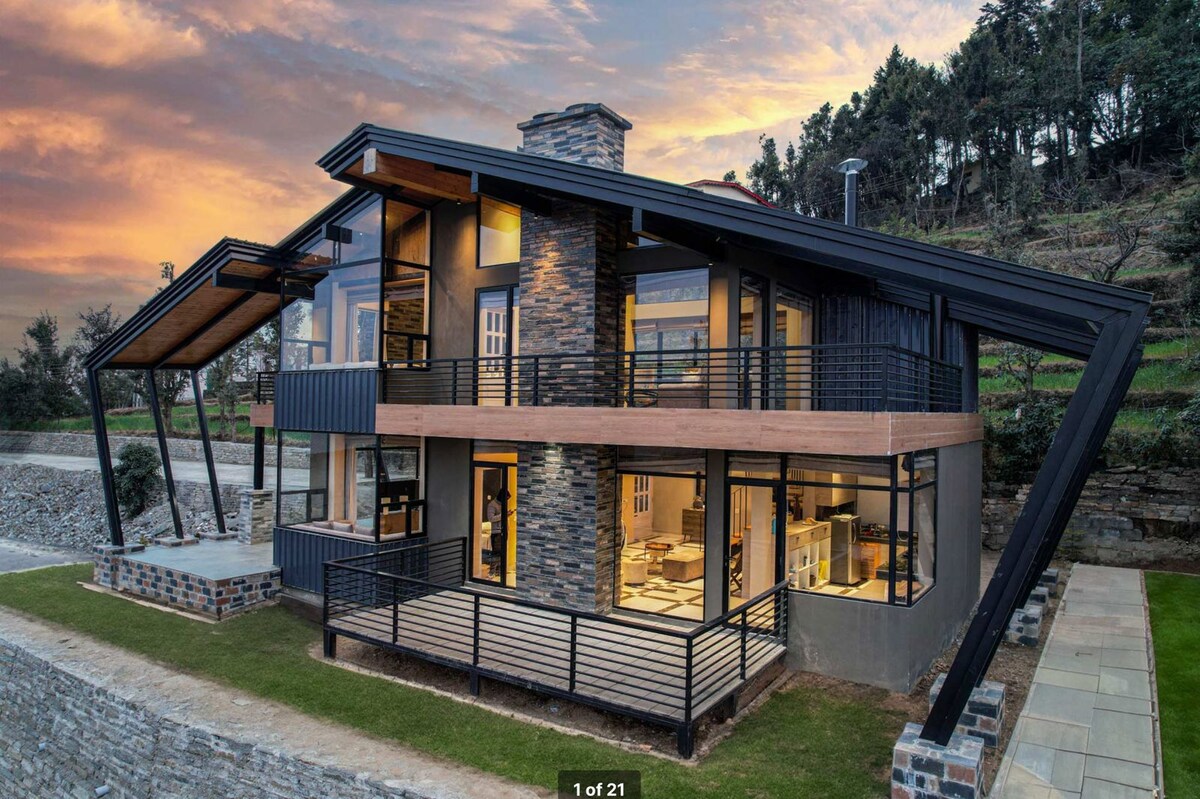 Perched amidst the rolling hills of Nainital, The Kafal Villa is a homage to Nainitalโs beautiful past of rustic living experiences. This 2-bedroom villa in Nainital is framed by a pathway filled with Kafal trees and flanked by verdant greens. Inside, timbered walls breathe warmth into every corner, wrapping the space in an air of quiet sophistication. The living space is complete with a library, plush sofas, and board games that whisper of quiet mornings and leisurely evenings.