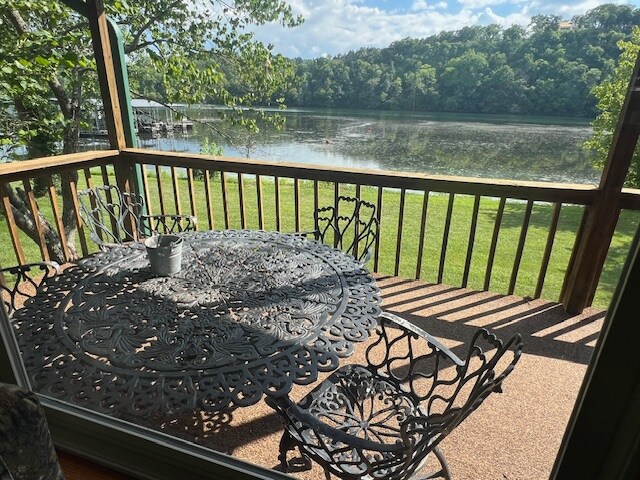 Lakefront cabin only 20 minutes from Branson! Ready for quiet? Relax on your spacious deck and hot-tub and feel the breeze coming off beautiful Lake Taneycomo. Walk out your door to fish and kayak, or put your boat in the rented dock slip and fish the many bass, bluegill & trout stocked yearly. Swim in the large sparkling resort pool. Walk or bike through park- like Edgewater Beach Resort, Empire Park, and below Powersite Dam on the paved, wooded trail. Play disc golf next door at Empire Park.