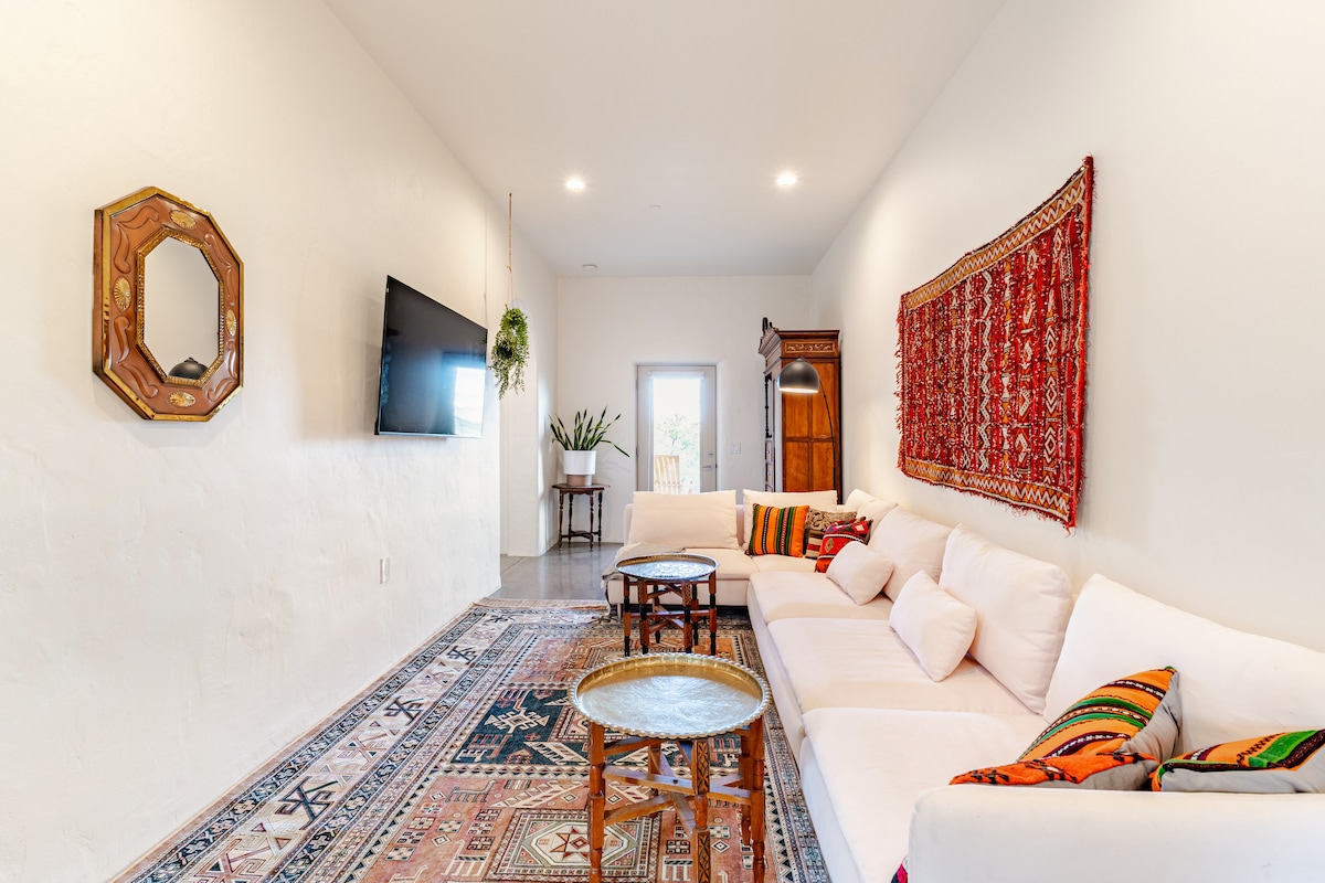 Პირველი კლასის კომფორტი ხეებსა და ლოდებს შორის. Ეს ელეგანტური ერთსაძინებლიანი თავშესაფარი ყველა საყოფაცხოვრებო პირობას გთავაზობთ. Გათბობით აღჭურვილი კორპის იატაკი, გაზის ჟურნალის ბუხარი, მაღალი დონის მოწყობილობები, კარგად აღჭურვილი სამზარეულო, სარეცხი მანქანა/საშრობი, უზარმაზარი სპის მსგავსი საშხაპე, WiFi, 4K ტელევიზორი, Toto Washlet, Super Automatic Jura ყავის აპარატი და ულტრა კომფორტული Tuft & Needle საწოლი. 1,2 მილის დაშორებით ისტორიულ ცენტრში Courthouse Plaza და ეს არის მოკლე გასეირნება ბილიკებზე ისტორიული პრესკოტ როდეოს მოედნის გარშემო.