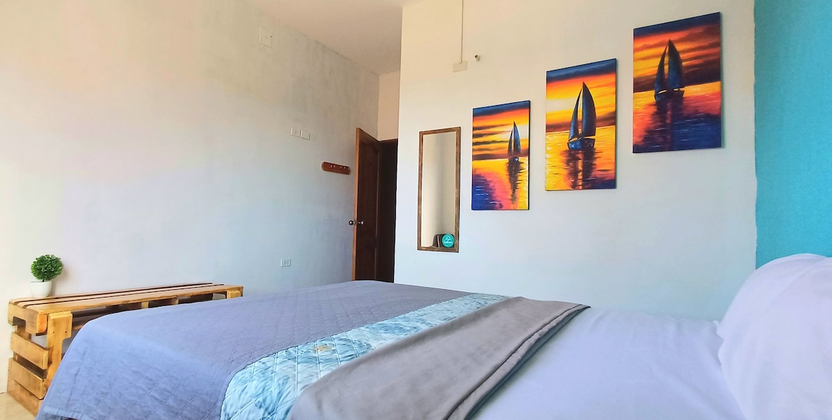Პირველი სართულის ნომერი ორადგილიანი საწოლით და ორადგილიანი ორსართულიანი საწოლით 1,5 საწოლით, იდეალურია ჯგუფებისთვის ან ოჯახებისთვის 6 ადამიანამდე. Მასში არის კონდიციონერი, ფუნქციური ცალკე სააბაზანო, სმარტ-ტელევიზორი Netflix-ით, კარადის ტიპის საკიდი და ტანსაცმლის საკიდი. Კომფორტული და კარგად ნიავდება. Აუზზე, სამზარეულოზე, გრილზე, ბაღებზე, ჰამაკებსა და სხვა ობიექტებზე უფასო წვდომა. Პლაჟიდან და მონტანიტას ცენტრიდან მხოლოდ 7 წუთის სავალზე, მაგრამ ხმაურისგან მოშორებით. Სიმშვიდე და საზიარო სივრცე.