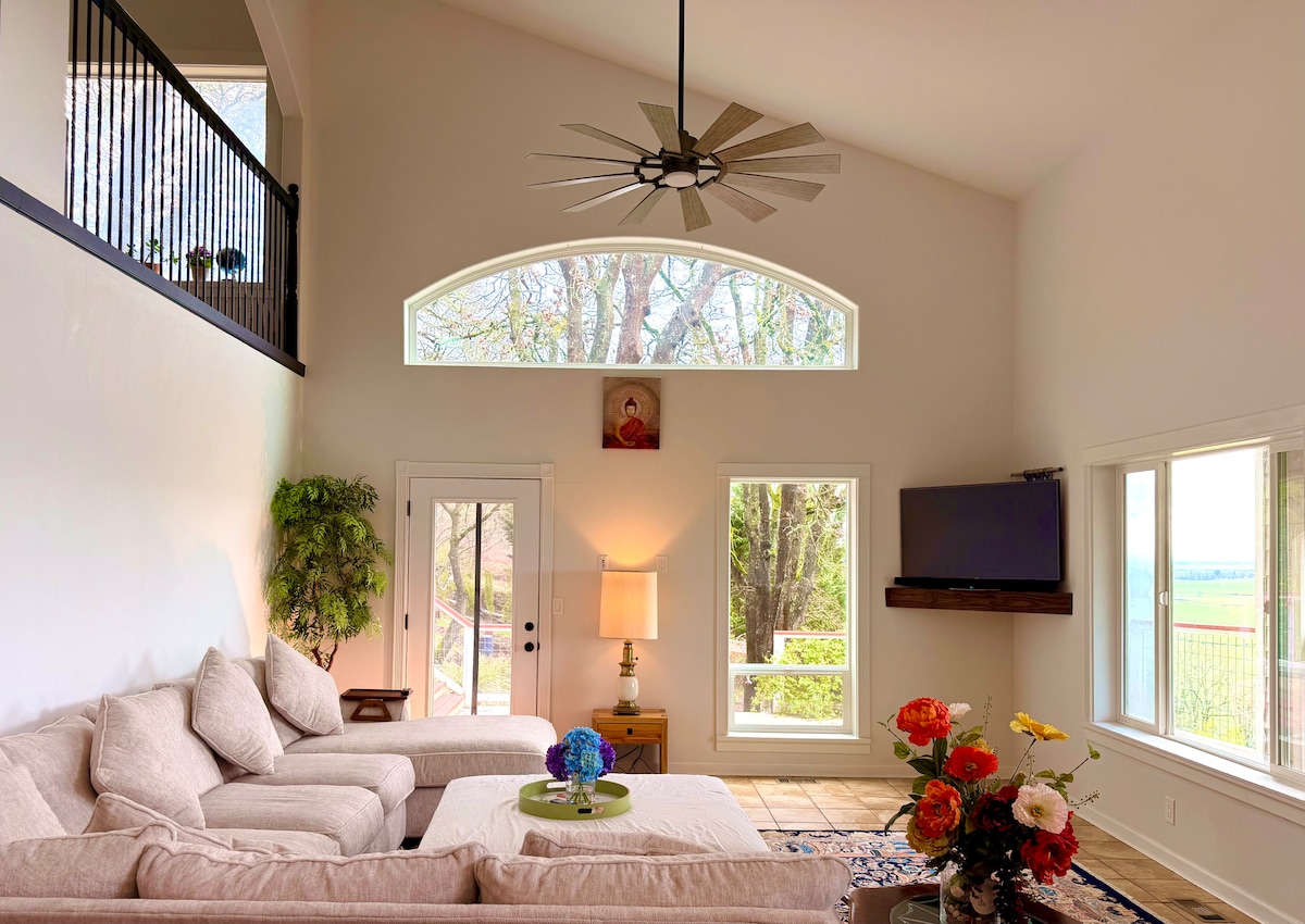 Ელეგანტური Master Suite დიდი საწოლით, საკუთარი შესასვლელით, აბაზანით და მინი-სამზარეულოთი. Პატიოდან კოსტიუმში შესასვლელად კომფორტულად უნდა ახვიდეთ 3 კიბეზე. Ეს ერთადერთი შესასვლელია. Წყნარ და მეგობრულ უბანში, ფაინ-რიჯის გოლფის მოედნის მოპირდაპირე მხარეს, სტუმრები დატკბებიან ქვეყნის გარემოთი Mountain View ‑ ით, თუმცა მანქანით დაახლოებით 20 წუთის სავალზე იუჯინის ცენტრამდე, ორეგონის უნივერსიტეტამდე, ჰეივარდ ‑ ფილდამდე, მეთიუ ‑ რაინდ ‑ არენამდე ან Autzen Stadium ‑ მდე.