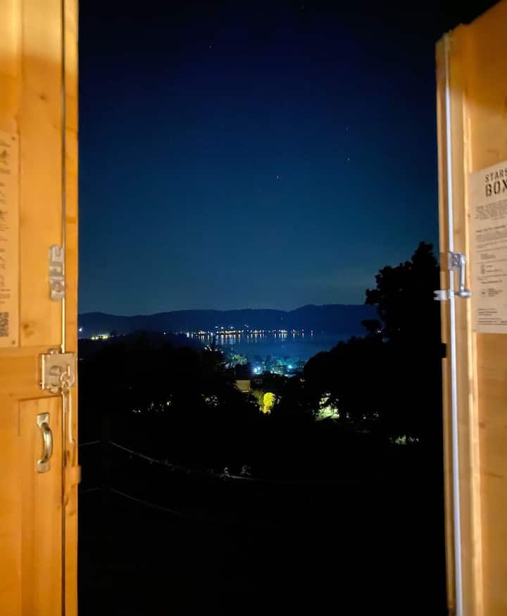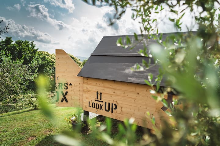 Ვარსკვლავები 1000 ვარსკვლავით და მყუდრო ბუდე ზეთისხილის ხეებს შორის