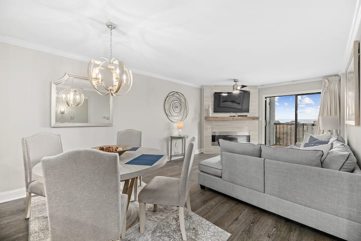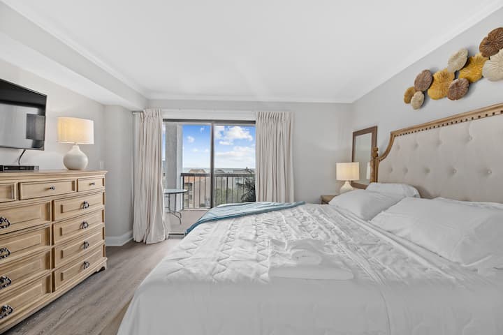 Მირტლ ‑ ბიჩის ეს განსაცვიფრებელი დასასვენებელი საცხოვრებელი მდებარეობს მირტლ ‑ ბიჩის ულამაზეს ოუშენ ‑ ბულვარში. Ეს არის 3 საძინებელი, 2 სააბაზანო კონდომინიუმი, რომლიდანაც შესანიშნავი ხედი იშლება ქალაქსა და ოკეანეზე არაგაბარიტული აივნიდან! Მთავარ საძინებელში არის შესანიშნავი კომფორტული საწოლი 50-დუიმიანი სმარტ-ტელევიზორით. Სამზარეულო სრულად აღჭურვილია ყველაფრით, რაც გჭირდებათ. Დანარჩენ საძინებლებს თან ახლავს ორადგილიანი საწოლი და 2 ორადგილიანი საწოლი. Მისაღები ოთახი აღჭურვილია 60-დუიმიანი ტელევიზორით, ბუხრითა და სასადილო მაგიდით. Უფასო Wi ‑ Fi კავშირი, საკაბელო და სარეცხი მანქანა/საშრობი