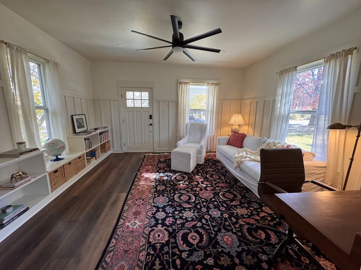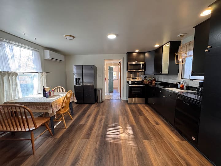 გმადლობთ ჩვენი გვერდის ნახვისთვის! მოხარული ვიქნებით, გიმასპინძლოთ ჩვენს სტუდიოს ტიპის ბინაში, რომელიც ბრეკენრიჯის ერთ‑ერთ საუკეთესო უბანში მდებარეობს. ჩემს მეუღლესაც და მეც თხილამურებითა თუ სნოუბორდით სრიალი ძალიან გვიყვარს, მაგრამ ავტომაგისტრალ I‑70‑ზე საცობებში მოძრაობა არ გვიყვარდება, ამიტომ 2021 წელს მთებში საცხოვრებელი ვიყიდეთ. როცა ეს სტუდიო შევიძინეთ, ძალიან მოძველებული იყო, ამიტომ მთლიანად გადავაკეთეთ მთავარი საცხოვრებელი სივრცე, რომ მთაში თანამედროვე საცხოვრებელი გვექონოდა. გვსურდა, რომ ეს საცხოვრებელი ისეთი ადგილი ყოფილიყო, რომლის გაზიარებაც სიამაყით შეგვეძლებოდა. ძალიან გაგვიხარდება, თუ დაჯავშნით! თუ რაიმე შეკითხვა გექნებათ, დაგვიკავშირდით ჰოუპსა და მე — სიამოვნებით დაგეხმარებით!