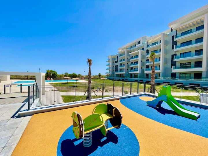 Ჩვენი შემოთავაზება 1, 2 ან 3 საძინებლიანი ბინებისთვის, რომლებიც მდებარეობს საუკეთესო განვითარებაში ბაღებით, აუზებით, სათამაშო მოედნით, საპსერფინგის ჩოგბურთითა და ჩოგბურთის კორტებით... ყოველთვის საუკეთესო ფასად.