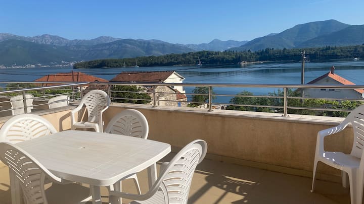 Კეთილი იყოს თქვენი მობრძანება ჩვენს მომხიბვლელ და ფართო 80 კვ/მ 2-საძინებლიან სახლში მონტენეგროს თვალწარმტაც ტივატის ყურეში. Ჩვენი ტერასიდან იშლება თვალწარმტაცი ხედები ყურეზე, ტივატის კუნძულებსა და ლოვჩენის განსაცვიფრებელ მთაზე. Სულ რაღაც 4 წუთის სავალზე გაისეირნეთ ფეხის თითები კრისტალურად სუფთა წყლებში და იდეალური ზღვისპირა დასვენება აქციეთ