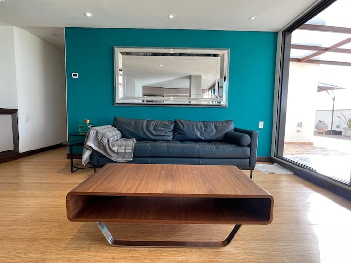 Კეთილი იყოს თქვენი მობრძანება კოლუმბიის კომფორტისა და ისტორიის მწვერვალზე ჩვენს ექსკლუზიურ პენტჰაუსში ამ ტერიტორიაზე, სადაც თანამედროვე ფუფუნება კოლონიურ ხიბლს ხვდება ბოგოტის ისტორიული „ლა-კანდელარიის“ უბნის ძლიერ გულში.