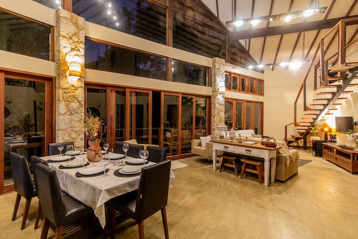 Ცენტრის გვერდით (3,8 კმ) მდებარეობს ჩანჩქერის მარშრუტის დასაწყისში და რეგიონის მთავარი კაჩაჩარიებიდან და ღირსშესანიშნაობებიდან 500 მეტრში. 1 წლის წინ, სოფლის და მყუდრო სტილში, 2500 მ2 ფართობის ტერიტორიაზე აშენებული სახლი გთავაზობთ დასვენების რამდენიმე ვარიანტს. Დაფარული ტერიტორია კონდიცირებული აუზით ჰიდრო, ბარბექიუთი, ბაღით, უხვი ფაუნითა და ფლორით, პატარა ბილიკით ღვთისმშობლის ტყესთან, ესპაჩოს სანსეტით და სუფთა წყლების ულამაზესი მდინარით ბუნებრივი აუზით ეზოში.
