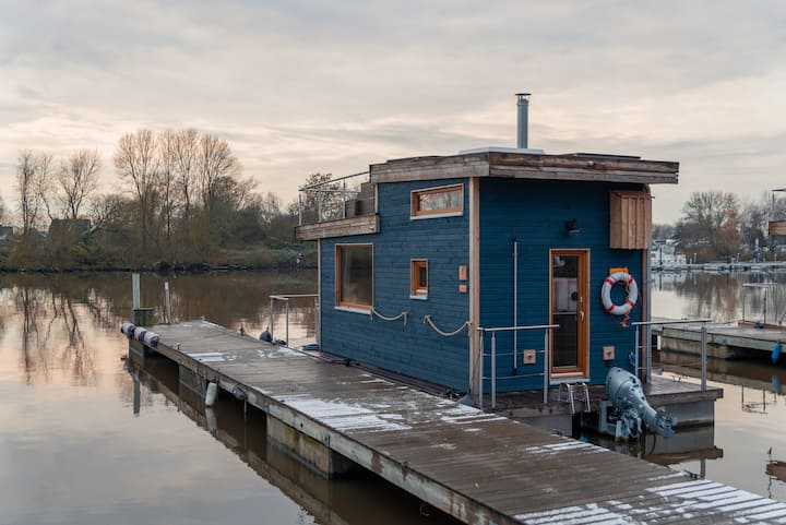 სახლი-გემი IRENE ბუხრით - ზამთარი ელბის მდინარეზე
