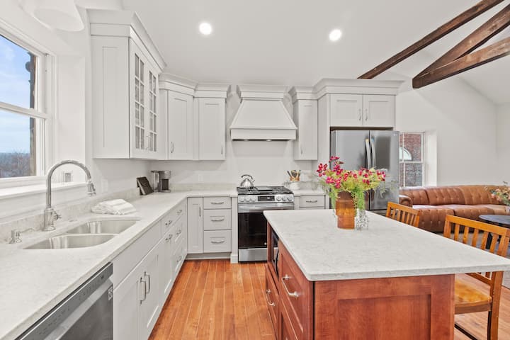 Კეთილი იყოს თქვენი მობრძანება ჩვენს ლუქს-კლასის პენტჰაუსის აპარტამენტში პალმირას შუაგულში, სადაც ისტორიული ხიბლი თანამედროვე ელეგანტურობას აკმაყოფილებს! Erie Canal-დან და ისტორიული ოთხი ეკლესიიდან🌟 სულ რაღაც 200 მეტრში, ეს მე-20 საუკუნის აგურის შენობა გთავაზობთ ტრადიციებისა და დახვეწილობის სრულყოფილ ნაზავს. 🏰