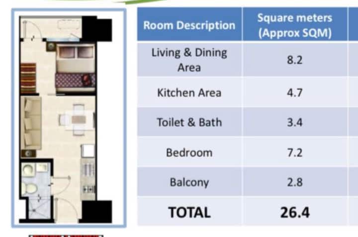 ეს 26,4 კვ. მ‑იანი მინიმალისტური 1‑საძინებლიანი კონდომინიუმი გასაშლელი დივნითა და ცალკე აივნით მდებარეობს „Grass Residences“‑ის მე‑26 სართულზე, მე‑4 კოშკში — აქ თქვენ მშვიდად დაისვენებთ ქალაქის ხმაურისგან მოშორებით.