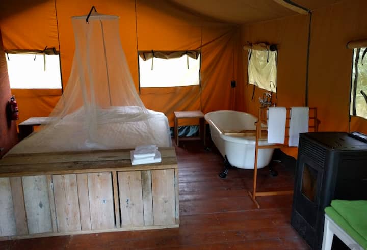 Რომანტიკული საფარის კარავი აბაზანით (ორადგილიანი)