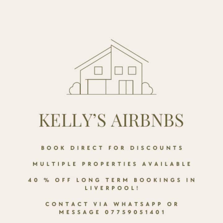 4 საძინებლიანი თანამედროვე სახლი ლივერპულში. 9 საძილე ადგილი. უფასო პარკირების ადგილი