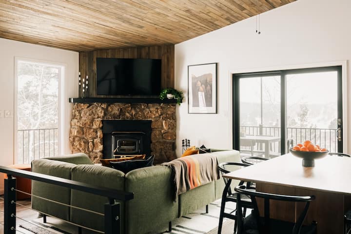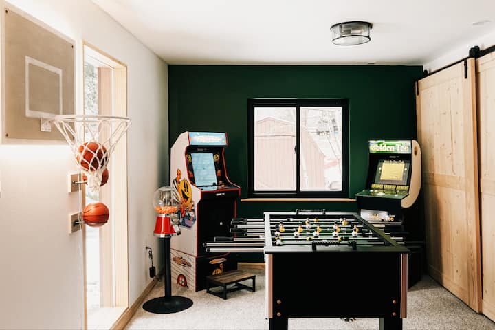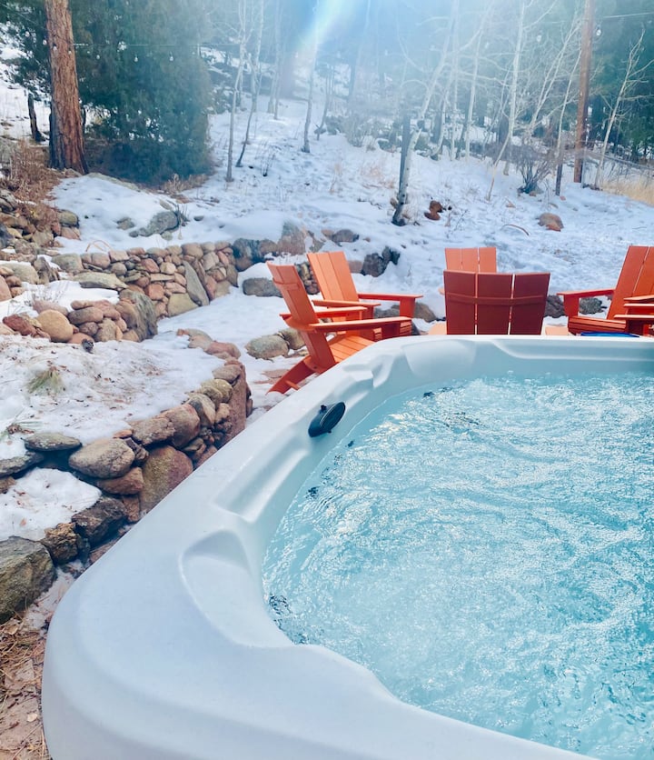 Კეთილი იყოს თქვენი მობრძანება სანსეტ-ჰევენში, კოლორადოს მთაში ოჯახებისთვის, მეგობრების ჯგუფებისთვის ან წყვილებისთვის, რომლებიც რომანტიკულ დასვენებას ეძებენ! Ეს 3-საძინებლიანი დასასვენებელი სახლი გამოირჩევა ჰიდრომასაჟიანი აუზით + არკადით + ცეცხლმოკიდებული ადგილით + ფოსბოლის მაგიდით + ყავით/იოგის ჩაის ბარით + და მთის ულამაზესი ხედებით!