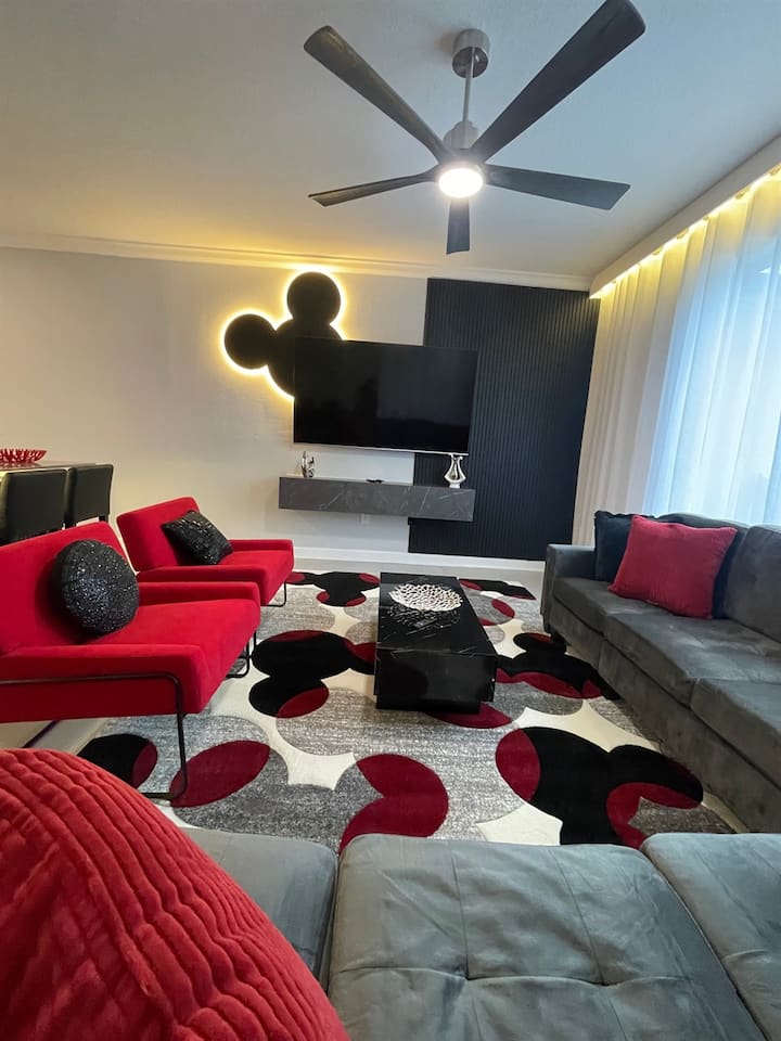 Შეიგრძენით თანამედროვე 4-ოთახიანი ბინა დაუვიწყარი ოჯახური დასვენებისთვის, სანუკვარი მოგონებებისთვის! Თქვენს შვილებს მოეწონებათ პრინცესისა და მიკის თემატიკის მიმზიდველი საძინებლები.